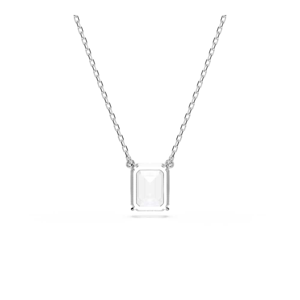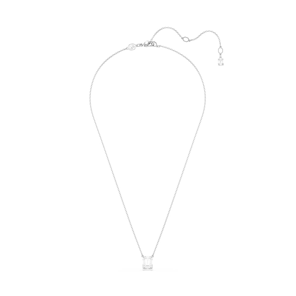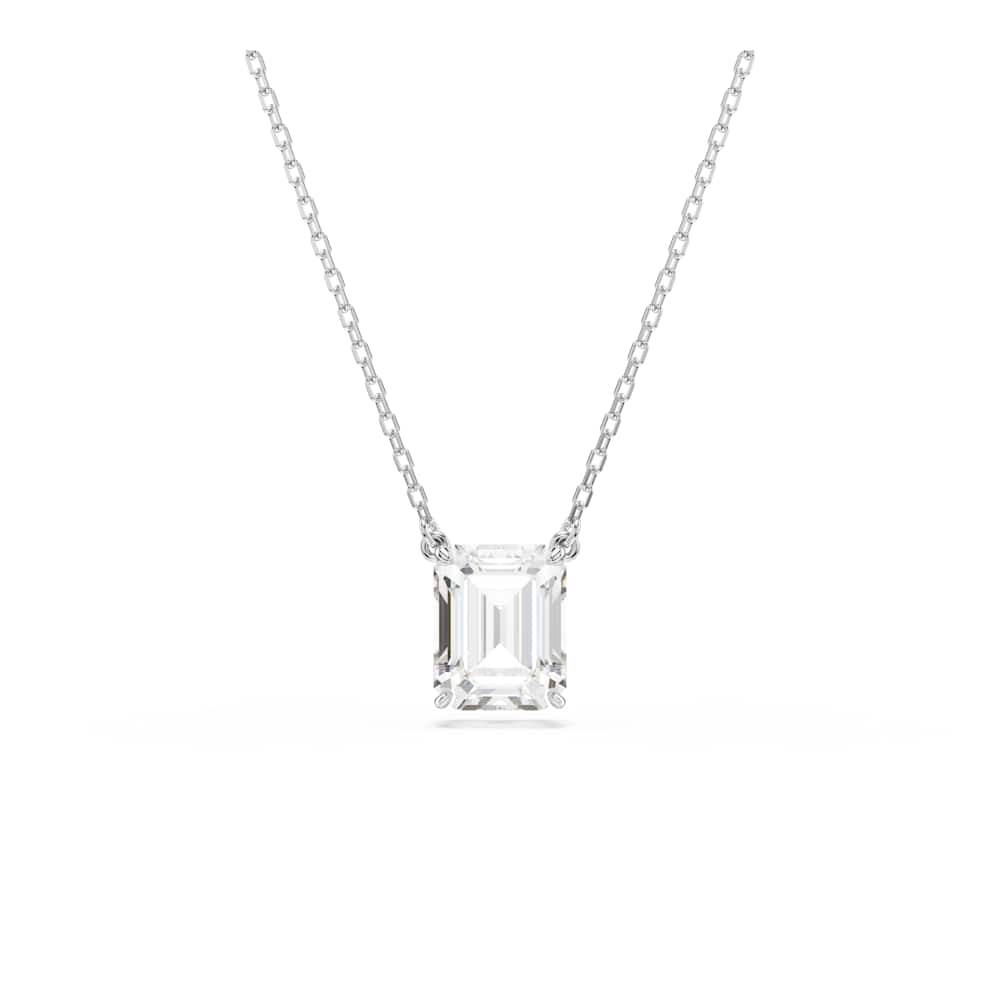 Este colgante Stilla es una brillante interpretación del octógono característico de Swarovski e irradia luz desde cualquier ángulo. Este diseño bañado en rodio, suspendido de una elegante cadena con cierre de mosquetón, presenta una única Swarovski Zirconia en el centro. Esta polifacética pieza es un regalo memorable para una ocasión especial.