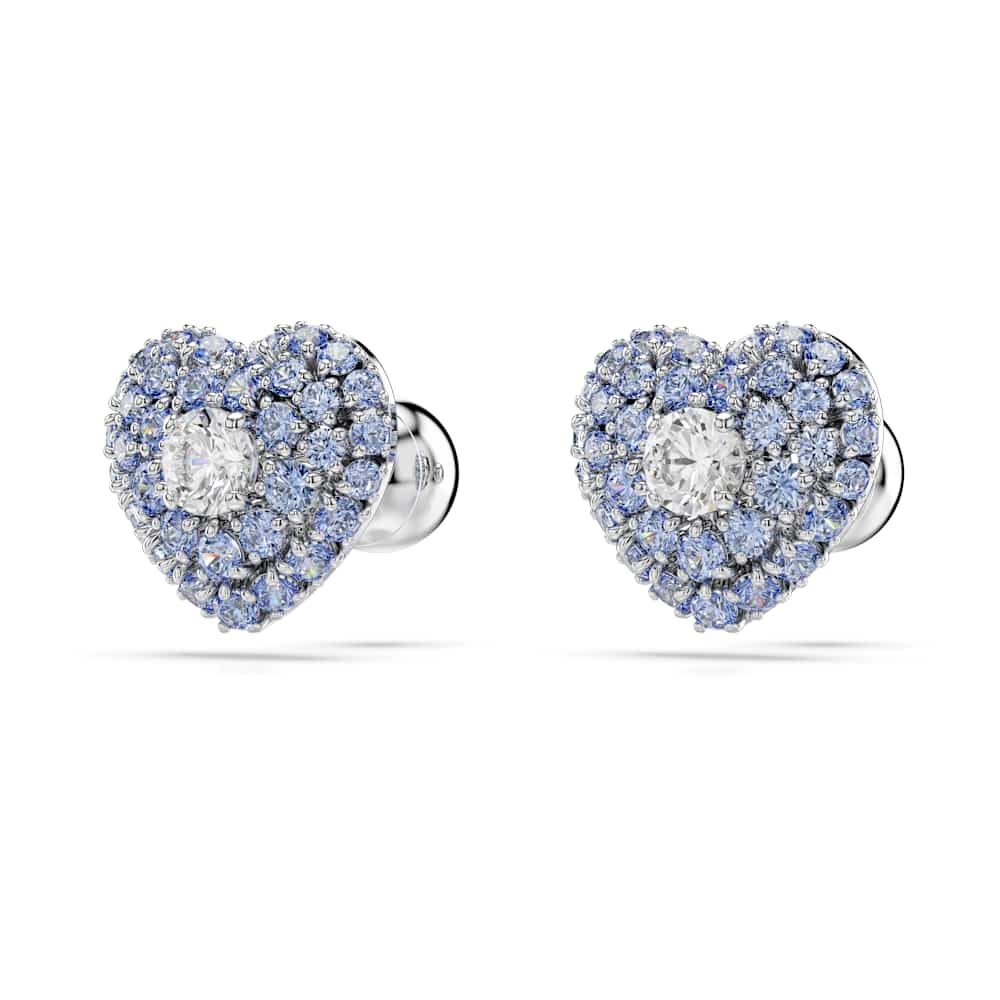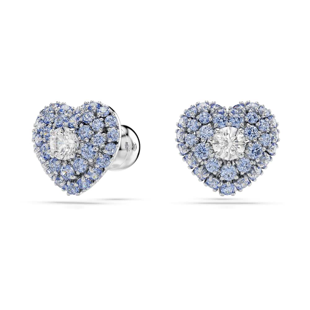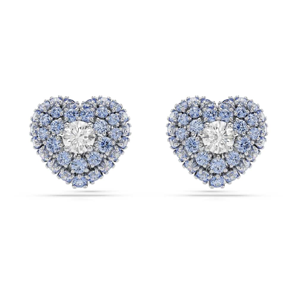 Estos pendientes de botón en forma de corazón son una forma colorida de aportar pasión a tu estilo. Cada pieza bañada en rodio se ha creado con un diseño de jaula para conseguir el máximo volumen. Para realzar el efecto abovedado, están adornados con Swarovski Zirconias redondas azules engastadas mediante la deslumbrante técnica chatonnage, mientras que, en el centro, una única Swarovski Zirconia brillante atrapa la luz desde todos los ángulos. Combínalos con un colgante a juego para conseguir el look romántico definitivo.