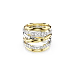 ANILLO DE COCTEL HYPERBOLA. Corte redondo, blanco, acabado en metal mixto