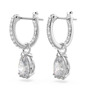 Pendientes de aro Millenia, Talla pera, Blancos, Baño de rodio