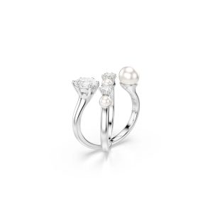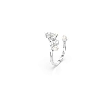 Anillo abierto Constella, Crystal Pearl, Tallas redondas, Blanco, Baño de rodio