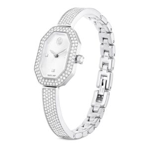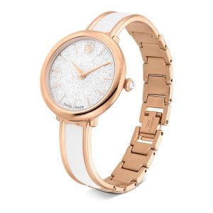 Reloj Crystalline Bangle, Fabricado en Suiza, Brazalete de metal, Blanco, Acabado tono oro rosa