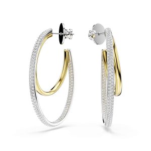 Pendientes de aro Hyperbola, Talla redonda, Medianos, Blancos, Combinación de acabados metálicos