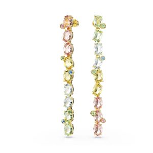 Pendientes Gema, Diseño asimétrico, Tallas mixtas, Largos, Multicolores, Baño tono oro