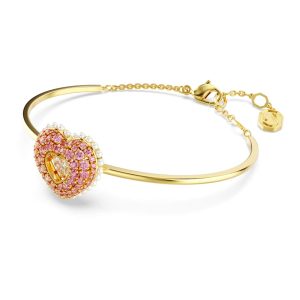 Brazalete Idyllia, Perla de cristal, Corazón, Rosa, Baño tono oro