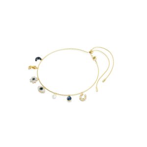 Gargantilla Symbolica, Perla de cristal, Luna, símbolo del infinito, trébol, ojo turco y herradura, Azul, Baño tono oro