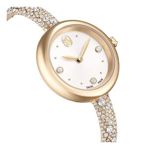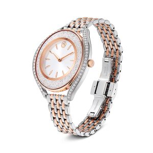 RELOJ AURA CRYSTALLINE. Hecha en Suiza, Brazalete de metal, Tono Oro Rosa, Acabado de metales mixtos