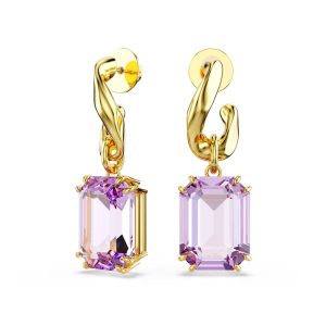 Pendientes Millenia, Talla octogonal, Morado, Baño tono oro