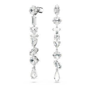 Pendientes Mesmera, Diseño asimétrico, Tallas mixtas, Largos, Blancos, Baño de rodio