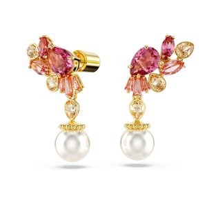 Pendientes Gema, Tallas mixtas, Crystal Pearls, Flor, Rosas, Baño tono oro